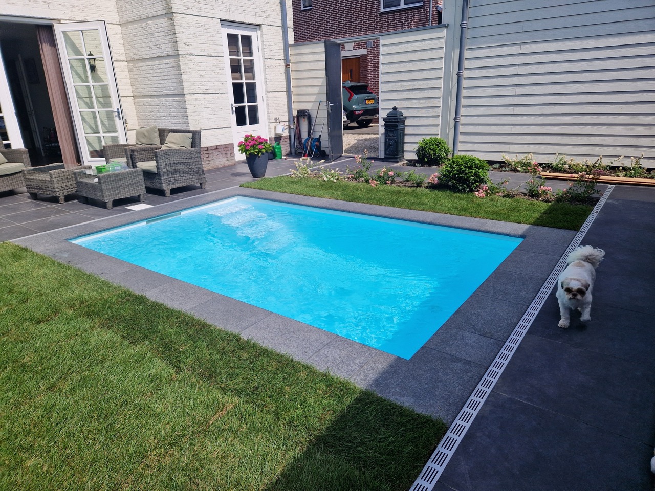 In deze moderne stadstuin in Middelburg hebben we een stijlvolle plunge pool van 400x250 cm geplaatst. Het laat perfect zien dat je ook met beperkte ruimte volop kunt genieten van luxe, verfrissing en rust.